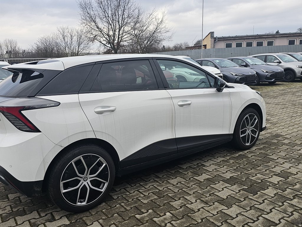 Systém automatického núdzového brzdenia (AEB), Systém varovania pred čelnou zrážkou (FCW) s detekciou cyklistov a chodcov, Inteligentný obmedzovač rýchlosti (SAS), Asistent pre jazdu v dopravnej zápche (TJA), Detekcia pozornosti vodiča (UDW), Systém varovania pred vybočením z jazdného pruhu (LDW), Aktívny asistent udržiavania v jazdnom pruhu (LKA), Asistent pre udržiavanie v jazdnom pruhu v núdzi (ELK), Varovanie pred zmenou jazdného pruhu (LCW), Systém monitorovania mŕtveho uhla (BSM), Systém varovania pred nárazom do zadnej Časti vozidla (RCW), Varovanie pred prichádzajúcimi vozidlami pri otváraní dverí (DOW), Systém monitorovania premávky pri cúvaní (RCTA), Automatické diaľkové svetlá (IHC), Adaptívny tempomat s obmedzovačom rýchlosti (ACC), Jednopedálové ovládanie zrýchlenia a spomalenia vozidla, Čelné airbagy vodiča a spolujazdca (x2), spínač deaktivácie airbagu spolujazdca, Bočné airbagy vodiča a spolujazdca (x2), predné a zadné hlavové (okenné) airbagy (x2), Protiblokovací brzdový systém (ABS), Elektronický rozdeľovač brzdnej sily (EBD), Systém kontroly stability (SCS), Systém kontroly trakcie (TCS), Systém ochrany proti prevráteniu (ARP), Asistent rozjazdu do kopca (HHC), Núdzové brzdové svetlo (EBL), Núdzové volanie o pomoc (E-CALL+), Systém monitorovania tlaku v pneumatikách (TPMS), Alarm - elektronické zabezpečenie, Elektronický imobilizér, 3-bodové predné bezpečnostné pásy s predpínačom a obmedzovačom zaťaženia (x2), 3-bodový zadný bezpečnostný pás (x3) s predpínačom a obmedzovačom zaťaženia, Akustické upozornenie na nezapnuté bezpečnostné pásy vpredu a vzadu, Upevnenie detskej sedačky ISOFIX (zadné sedadlá) (x2), LED svetlomety s manuálnym nastavením sklonu, LED denné svetlá, Smerové svetlá integrované v prednom spojleri, Zadné full LED svetlá, Tretie zadné brzdové LED svetlo, Zadné hmlové svetlo, Automatický svetelný senzor, Funkcia komfortných svetiel "Coming home" a "Welcome light", Elektricky ovládané, vyhrievané a sklopné vonkajšie spätné zrkadlá s ukazovateľmi smeru, Zadné parkovacie senzory, 360° panoramatická parkovacia kamera, Spodné lišty dverí (čierne), Dvojitý zadný strešný spojler, Predné stierače bez ramienok, Zadné stierače, Tónované okná, Tónované zadné okná a okno piatych dverí, Aktívna mriežka chladiča, Vyhrievané zadné okno, Kľučky dverí vo farbe karosérie, Multifunkčný volant potiahnutý syntetickou kožou, Výškovo a pozdĺžne nastaviteľný volant, Vyhrievaný volant, Predná stredová lakťová opierka s úložným priestorom, Osvetlený odkladací priestor na strane spolujazdca, Vnútorné spätné zrkadlo s automatickým stmievaním, Predné držiaky na poháre v stredovej konzole (x2), Stropná priehradka na okuliare, Sklopné stropné madlá (x3), Osvetlenie prednej časti interiéru, Osvetlenie batožinového priestoru, Kryt batožinového priestoru, Slnečná clona vodiča a spolujazdca s kozmetickým zrkadlom, Elektrická zásuvka 12V na prednom paneli (x1), Čalúnenie sedadiel z látky/syntetickej kože, Vyhrievanie predných sedadiel, Sedadlo vodiča elektricky nastaviteľné v 6 smeroch, Sedadlo spolujazdca manuálne nastaviteľné v 4 smeroch, Vrecko na zadnej strane operadla vodiča a spolujazdca, Operadlo zadných sedadiel delené v pomere 60:40, 3opierky hlavy na zadných sedadlách, Automatická klimatizácia, Tepelné čerpadlo, Elektrický posilňovač riadenia s nastaviteľnou intenzitou riadenia, Elektrický posilňovač bŕzd s nastaviteľnou odozvou brzdového pedálu, Elektrická parkovacia brzda (EPB) s funkciou Auto Hold, Centrálne zamykanie dverí s diaľkovým ovládaním, Inteligentný systém centrálneho zamykania bez kľúča, Centrálne zamykanie ovládané cez Bluetooth®, Automatické štartovanie vozidla (stlačením brzdového pedálu), Prispôsobiteľné jazdné režimy (5 režimov), Elektrické ovládanie predných a zadných okien s funkciou AUTO a ochranou proti privreniu, Automatické zamykanie dverí počas jazdy, Palubný počítač, Audio systém s 10,25" farebným dotykovým displejom, AM/FM tunerom, prehrávaním MP3, hlasovým ovládaním (iSMART), Navigácia s prehľadom dopravnej situácie, Príjem digitálneho rádia (DAB+), Digitálny prístrojový panel so 7" farebným displejom, Bluetooth® hands-free, podpora Apple CarPlay® a Android Auto™, Ovládanie funkcií vozidla prostredníctvom mobilného telefónu, 6 reproduktorov, 2 mikrofóny, Vstup USB na prednom paneli (USB A x1, USB C x1) a na zadnej strane stredovej konzoly (USB A x1), Bezdrôtové nabíjanie mobilného telefónu, Hotspot WiFi, 18" disky z ľahkých zliatin s dvojfarebnými krytmi + pneumatiky 235/45 R18, Súprava na núdzovú opravu pneumatík, Lítiovo-niklovo-mangánovo-kobaltová (NMC) batéria pohonu, 302 - 470 V, 77 kWh, 104 článkov, Kombinovaný konektor na nabíjanie AC/DC (Mode 3, 4), Palubná trojfázová nabíjačka 11 kW, Čas nabíjania (nabíjacia stanica, Mode 3, 10-100 %, AC 11 kW) - približne 7 hodín, Čas nabíjania (rýchlonabíjacia stanica, Mode 4, 10-80 %, konektor CCS) - približne 38 minút, Možnosť miery rekuperácie elektrickej energie (KERS, 4 úrovne), Možnosť použitia vozidla ako záložného zdroja energie (V2L)